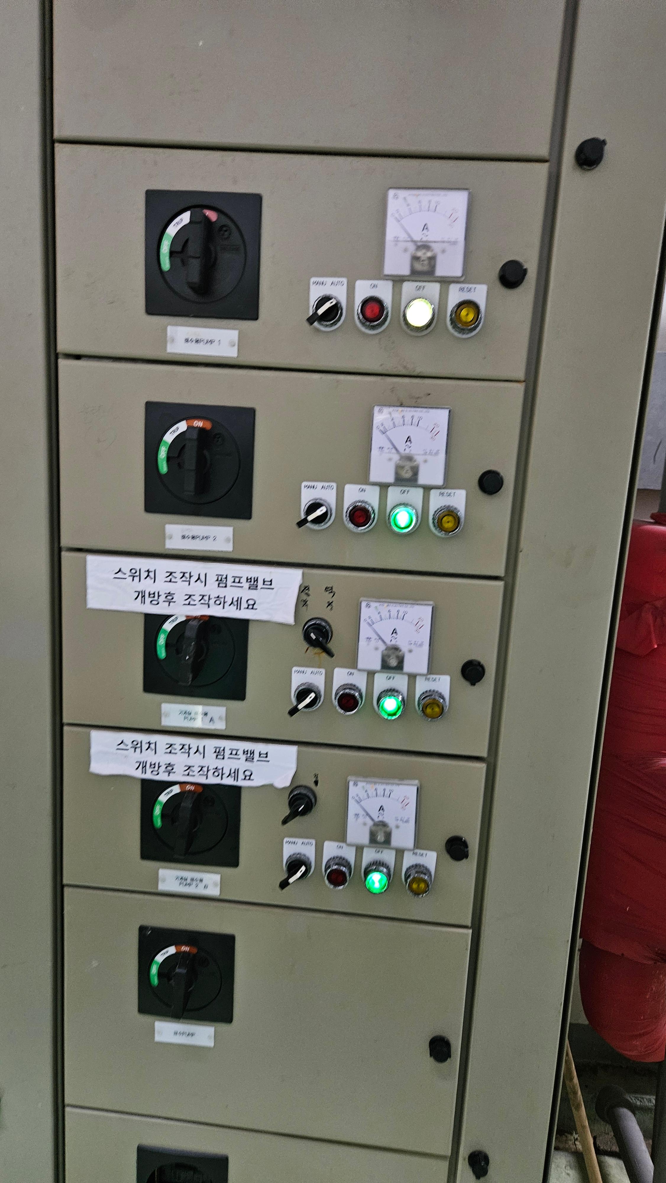 집수정 펌프 판넬입니다 모두 자동으로 놓고 점검합니다 점검및시운전완료
