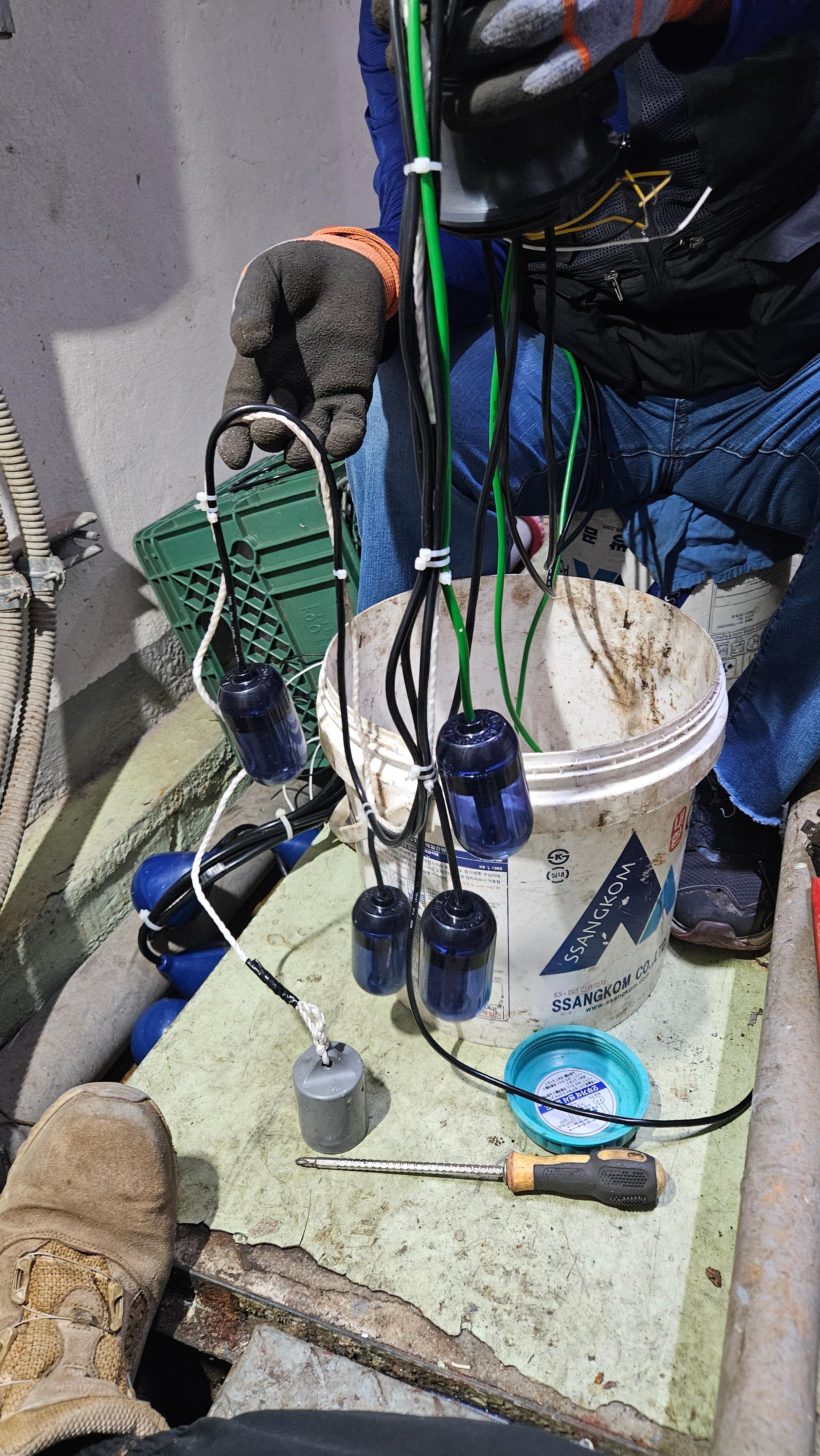 집수정 오뚜기센서와 홀더 등을 바꾸고 집수정 깊이에 따라 오뚜기센서위치를 정합니다