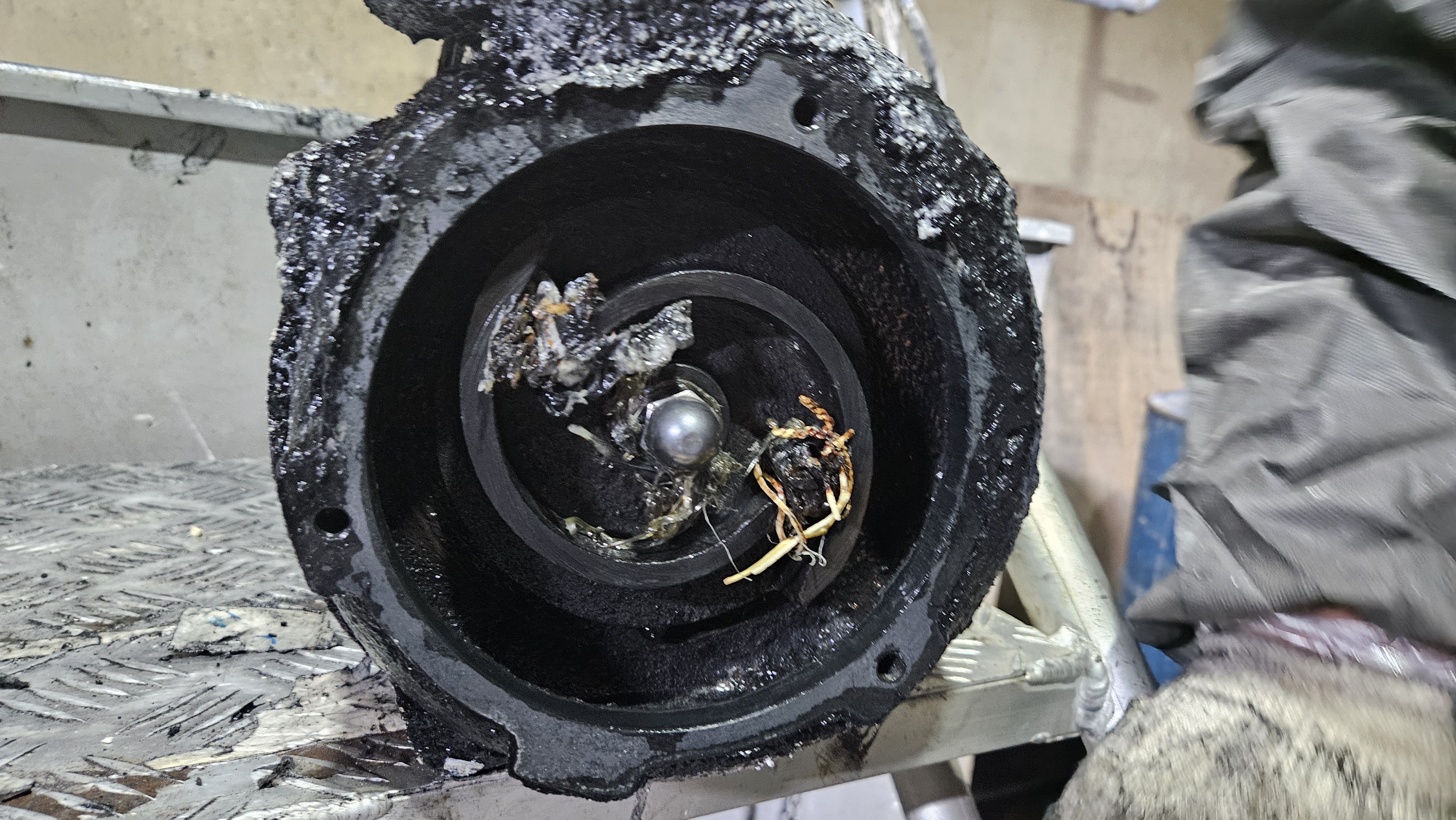 펌프를 인양후 분해했더니 예상대로 임페라에 이물질이 감겨있네요