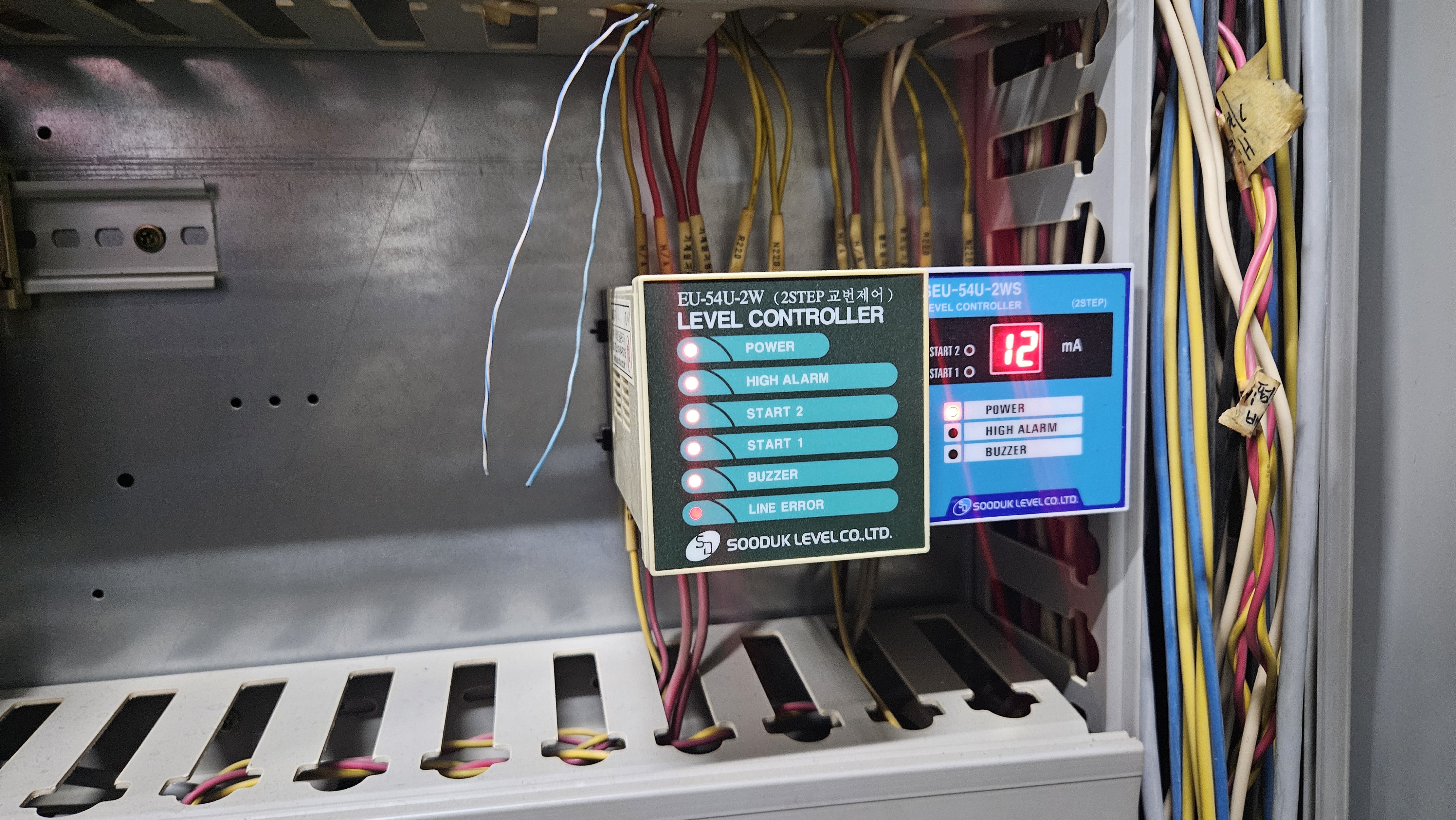 저희 대승엔지니어링에서 아래 사진 우측처럼 신형레벨콘트롤 SEU-54U-2WS와 신형오뚜기센서SL-4S-2W로 교체 작업을 해주었던곳입니다