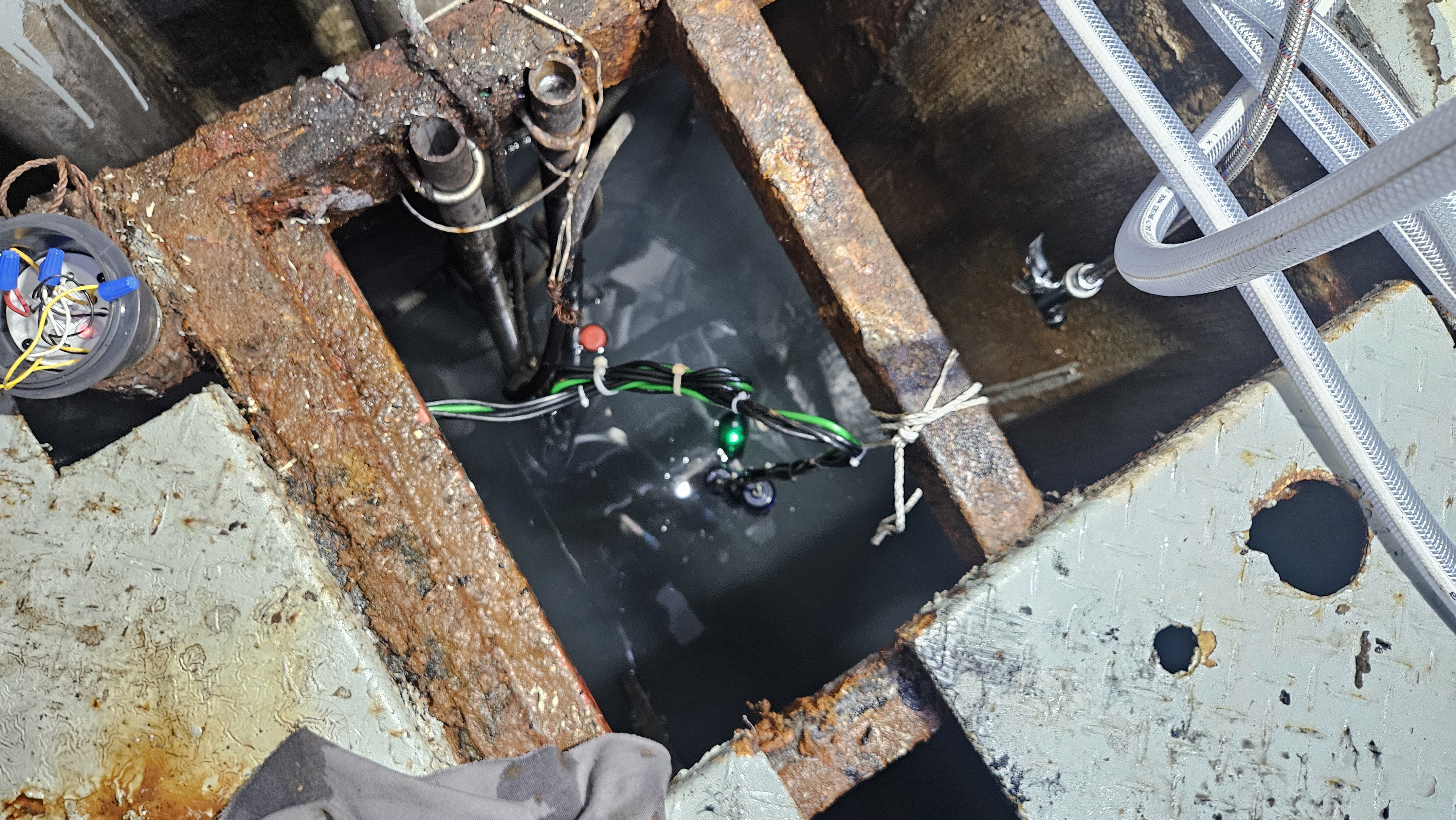 오뚜기센서를 수중펌프 인양장치인 가드레일에 묶어 놓았네요