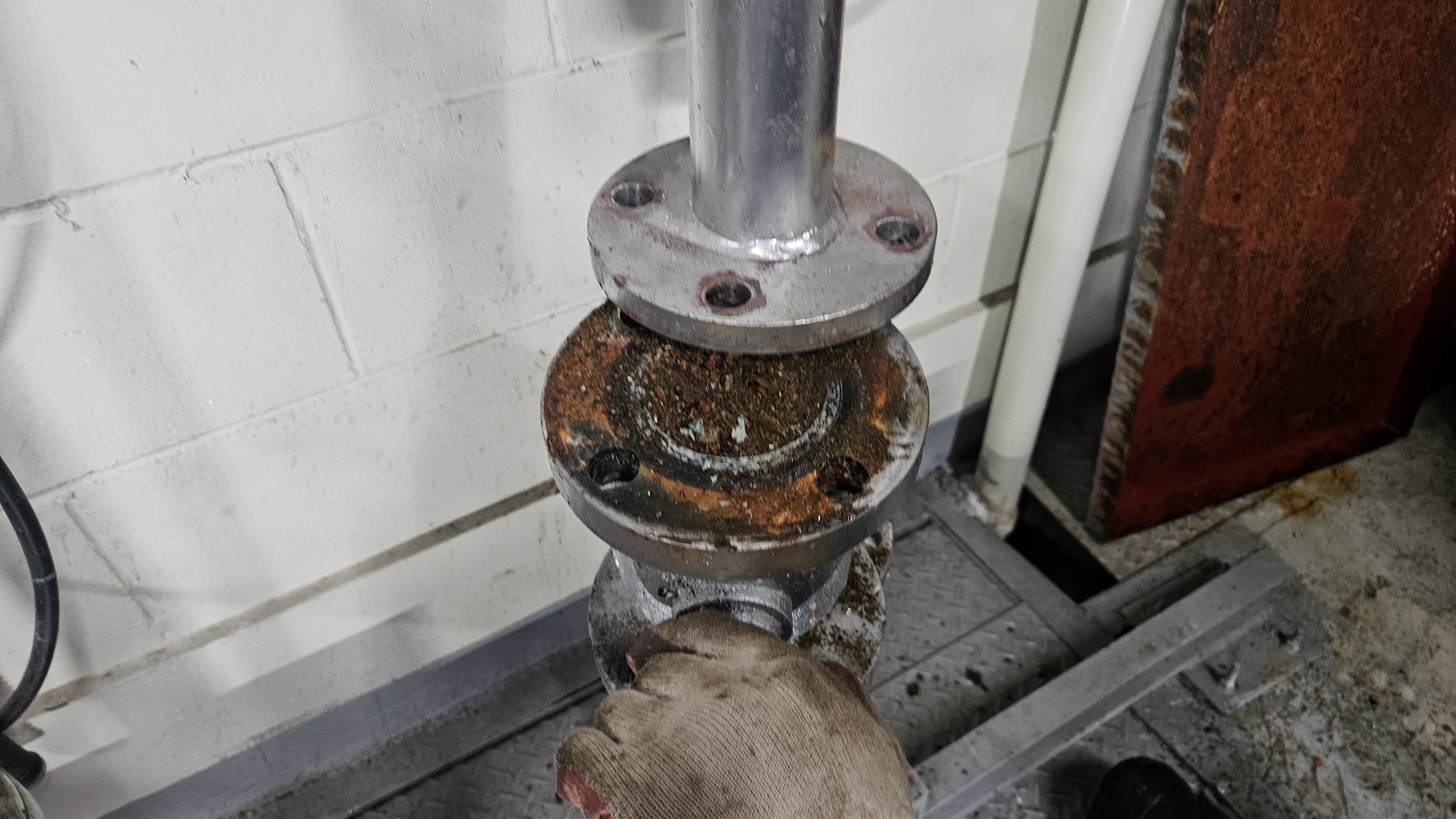 스모렌스키체크밸브 연결후렌지 부분 부식을 제거중입니다