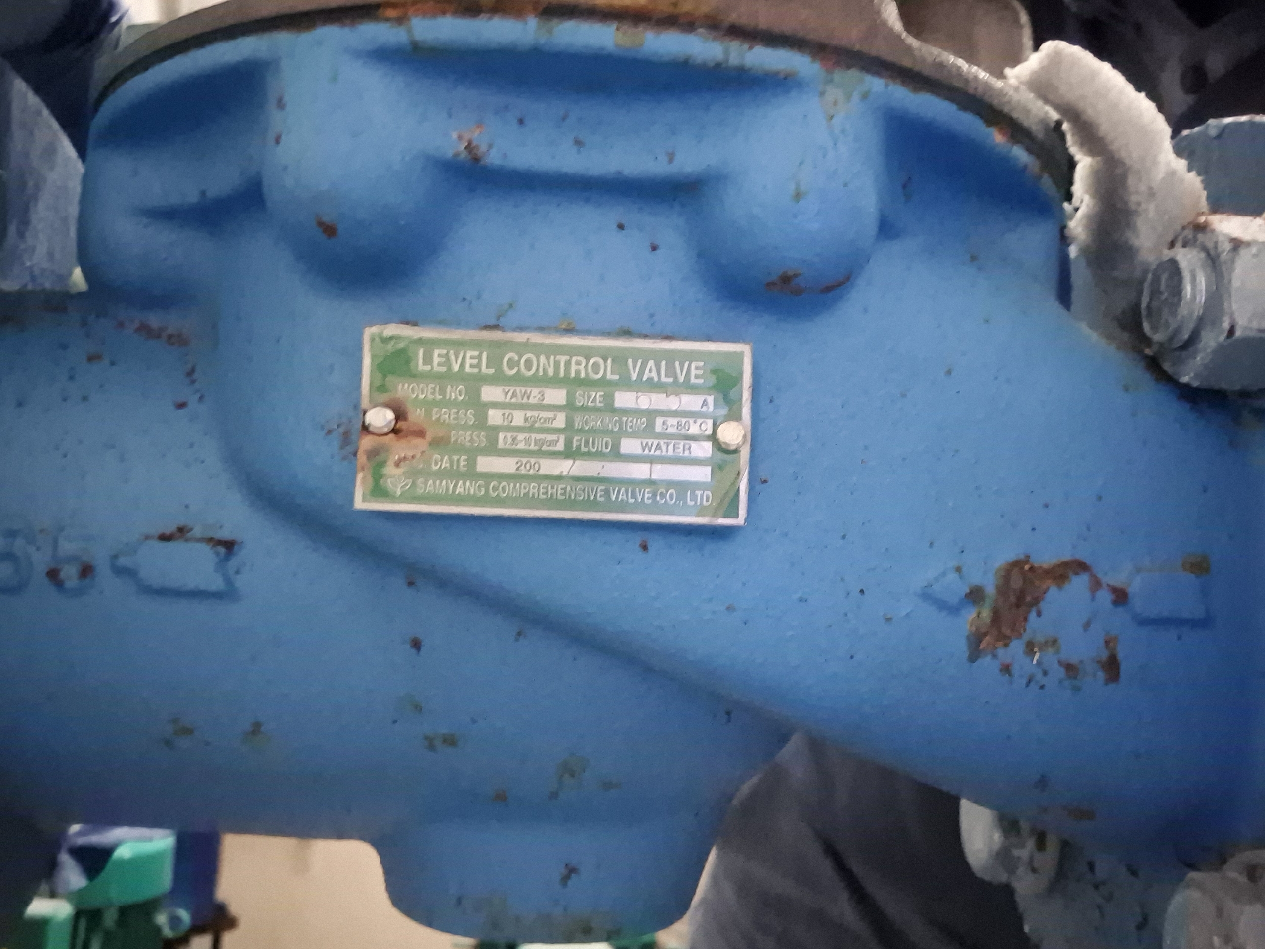 기존 정수위밸브 명판입니다 YAW-3 구경65A
