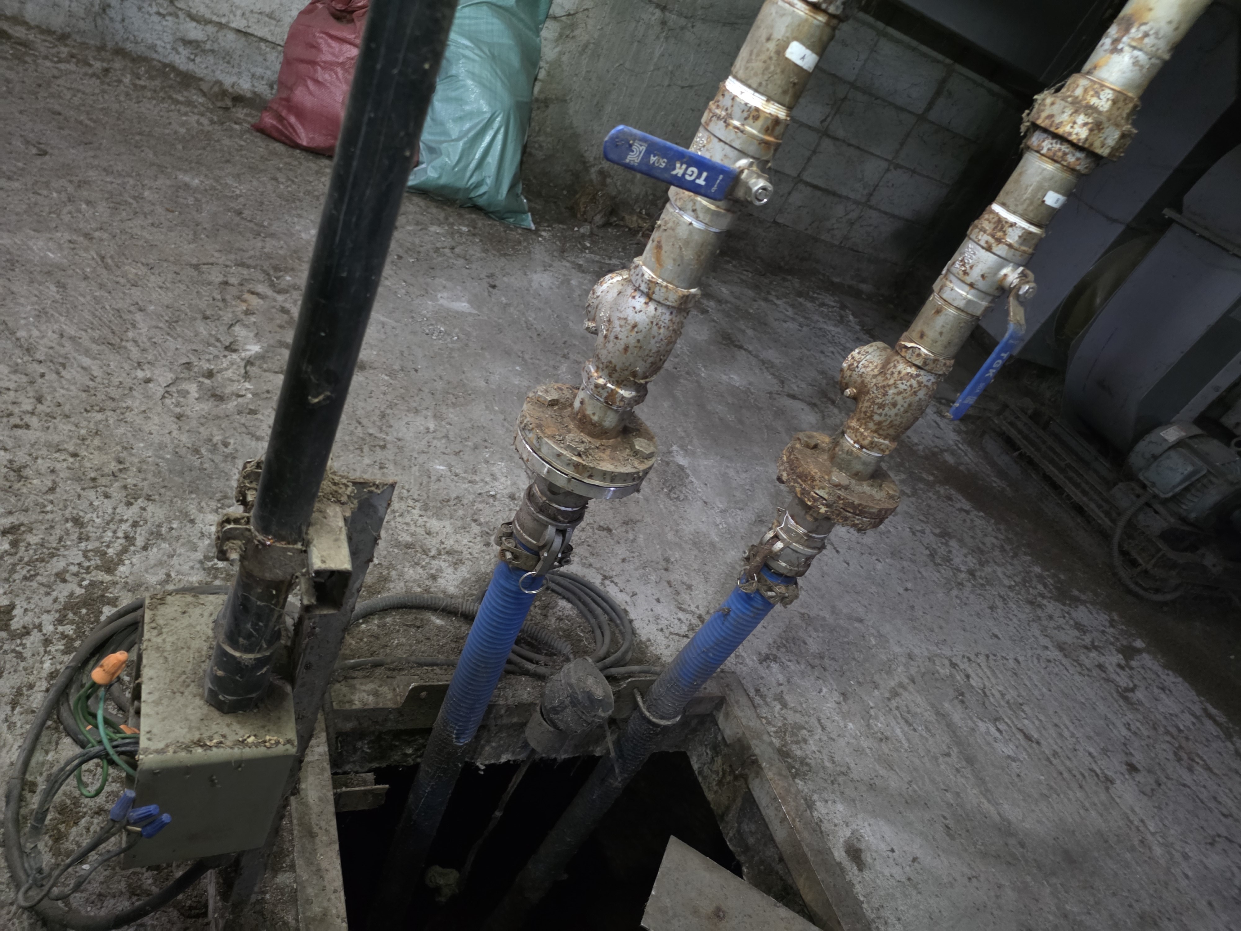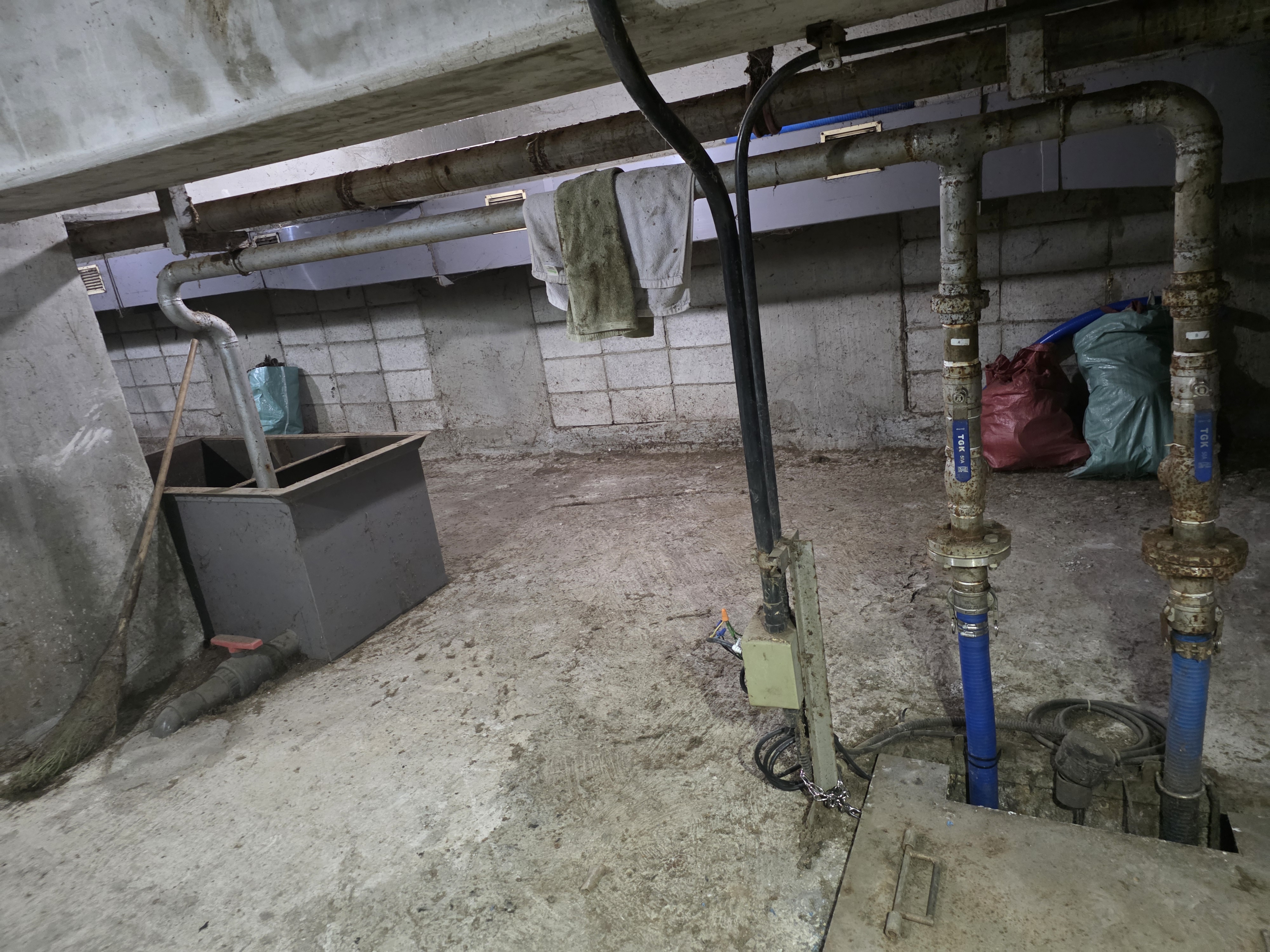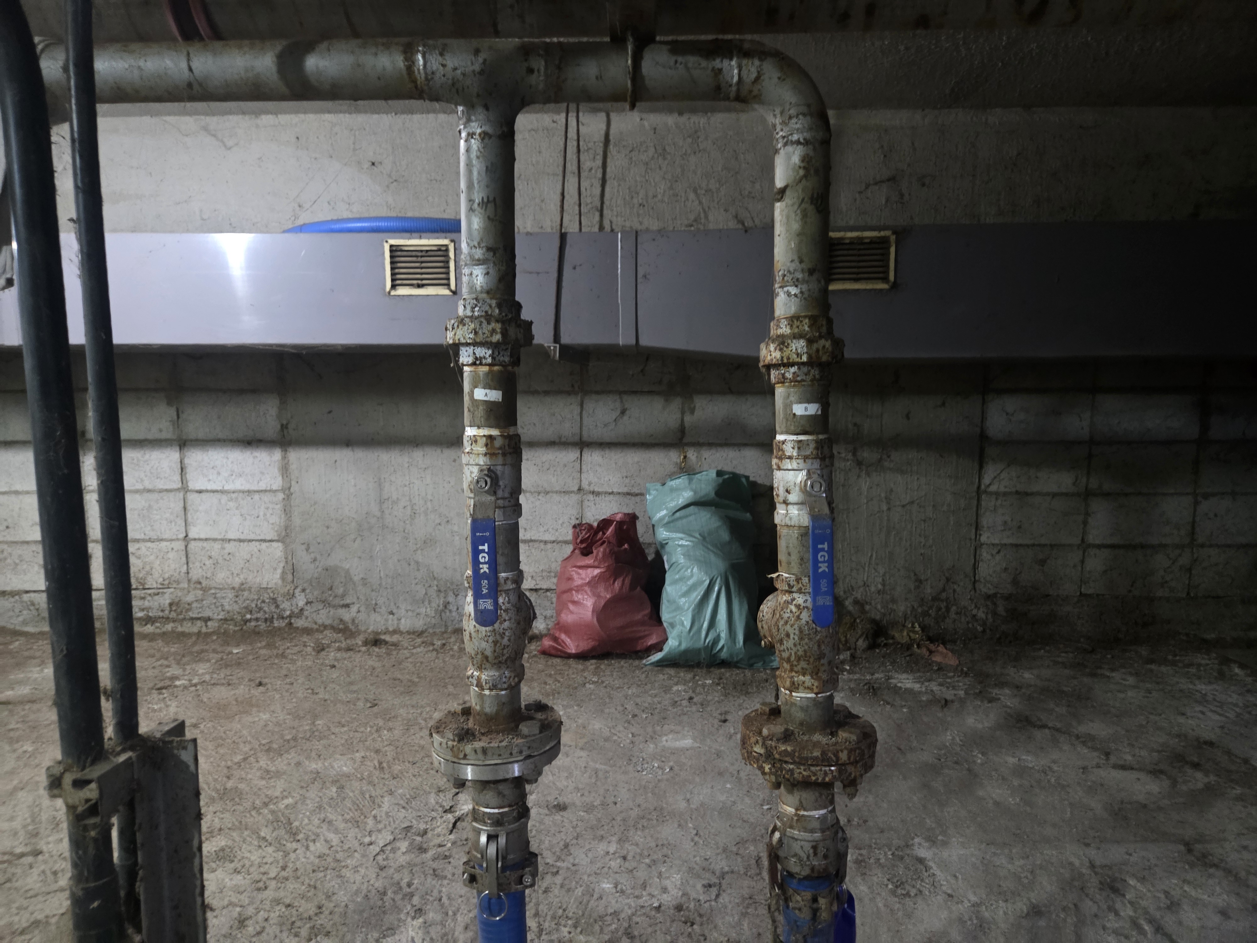 정화조실 내부지만 상태를 보아 배관 밸브(손잡이가 파란색) 등이 스탠제품인것 같습니다