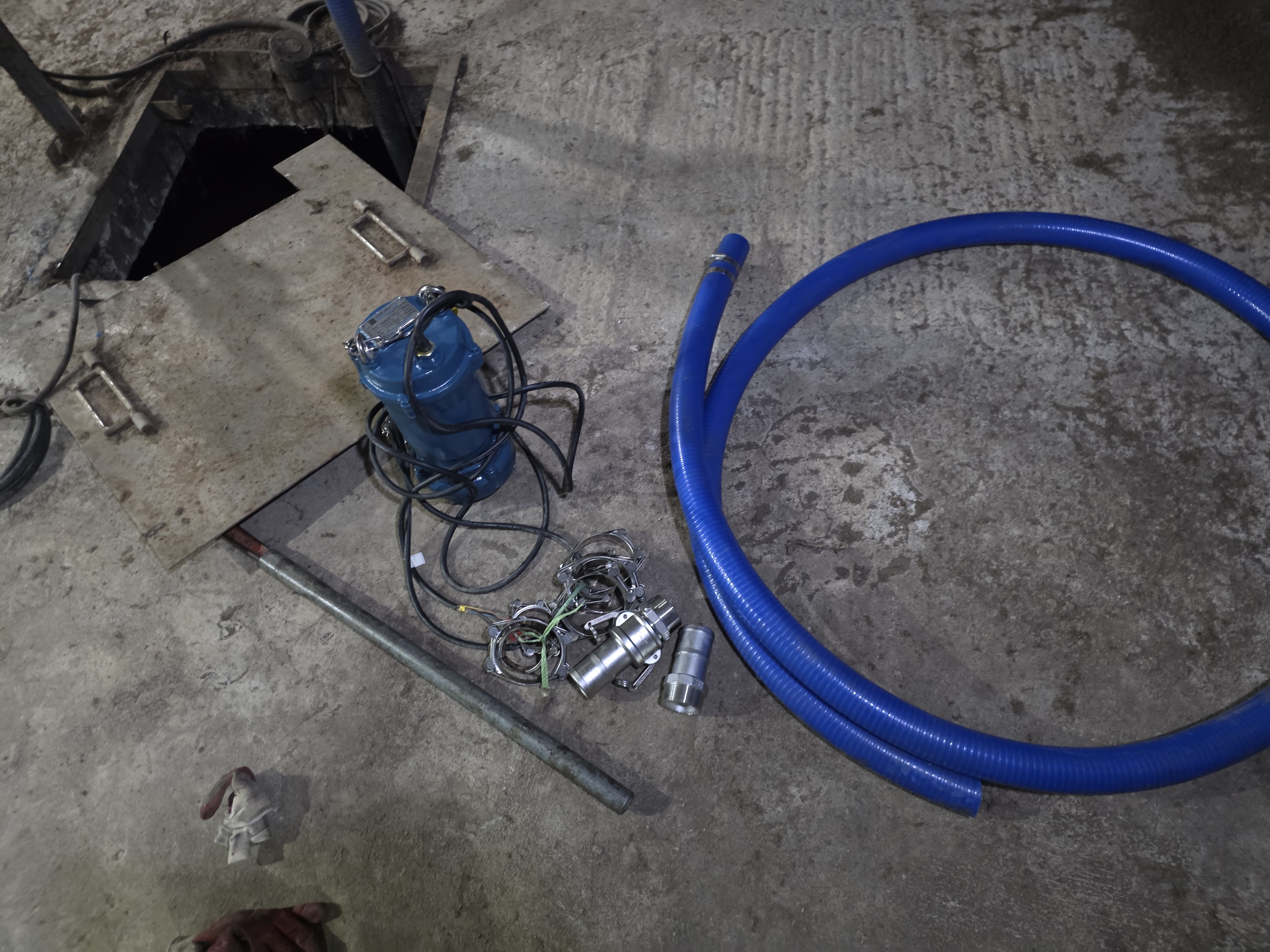 청고압호스와 결합수 수중펌프 안착 시운전